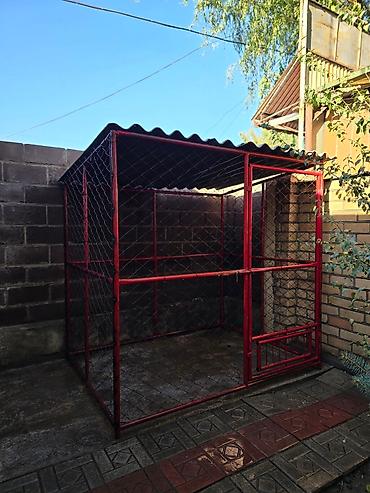 Просторный уличный вольер для собак из металлического каркаса с сеткой-рабицей и односкатной крышей из профлиста. Основные характеристики: - Конструкция:разборный стальной каркас, стенки из рабиц...