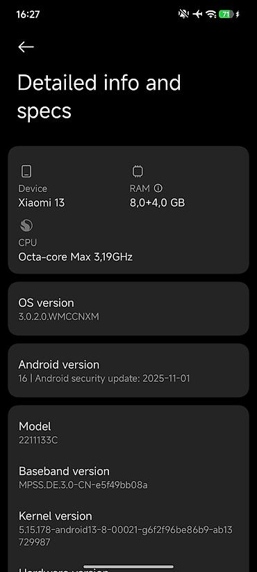 Смартфон Xiaomi Redmi Note 13 с системой Xiaomi HyperOS. Ключевые характеристики: - Память: 256 ГБ встроенной, доступно около 25,5 ГБ занято (по скриншоту настроек). - ОС: HyperOS, версия 2.0.208....