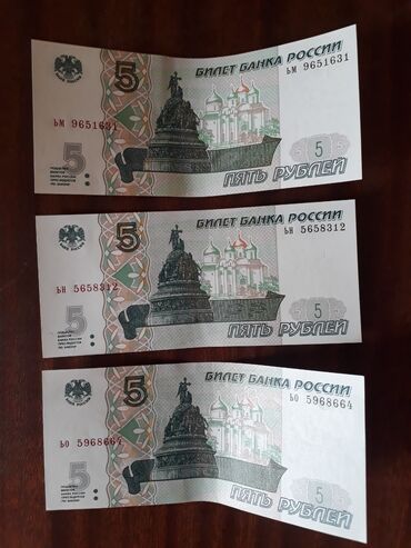 Продам купюры со времён СССР 3 рубля;17 штук(осталось) 5 рублей;5