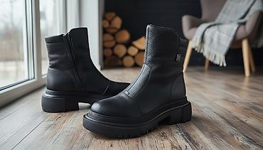 Женские кожаные ботинк, черные - Материал: гладкая натуральная кожа с мягким блеском - Цвет: классический черный - Застежка: без молнии и шнуровки (врезной силуэт, надеваются как сапоги-чулки) - П...