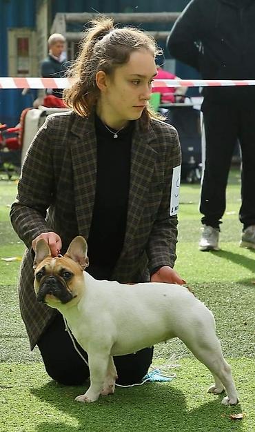 Продается щеночек Питбуля чистый Девочка Белая с темными пятнами