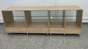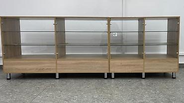 Стеклянная вертикальная витрина на алюминиевом профиле с раздвижными дверцами и несколькими уровнями полок из закалённого стекла; нижние тумбы под хранение. Цена витрины - 5500 Назначение: - про...