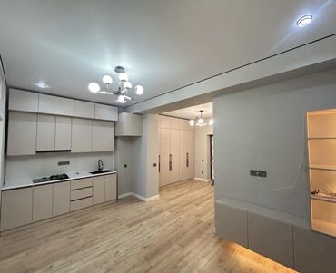 Просторная студия с современным ремонтом! 📍Джал Квартира объединяет кухню, столовую и гостиную в одно гармоничное пространство. ✨ Установлены точечные светильники и декоративные люстры — свет расп...