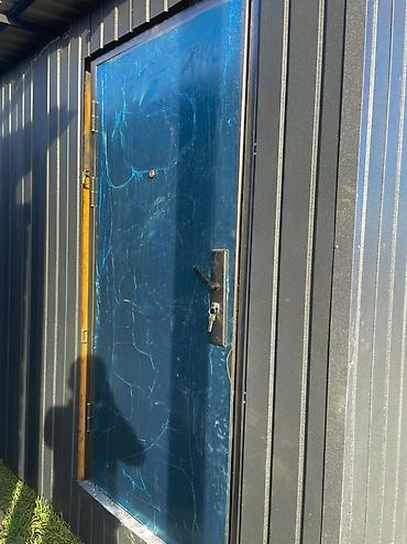 - Боковая входная дверь (металлическая) с замком и ручкой.