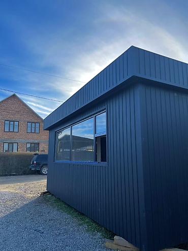 Металлический бытовой/торговый павильон (модуль) - Каркасный модуль с внешней обшивкой профлистом темно-серого цвета - Крыша односкатная из профнастила с выпуском карнизов - Входная дверь пластико...