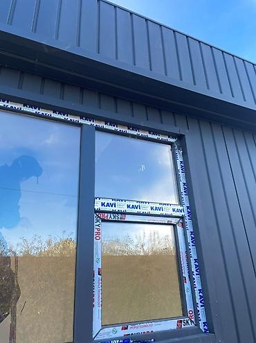 - Каркас металлический, облицовка вертикальным профлистом/сэндвич‑панелями темно‑серого цвета.