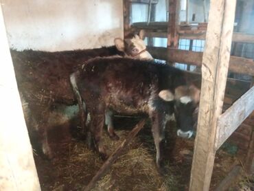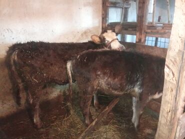 Телки на откорме - Несколько голов молодняка, рогатые, ушные бирки установлены. - Содержатся в крытом стойле с поилками и кормушками. - Откорм на зернофураже и сене; доступны мешки комбикорма. - ...