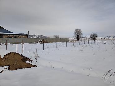- Участок частично огорожен: по периметру установлен сетчатый забор на металлических столбах, с одной стороны — капитальный бетонный/сборный забор.