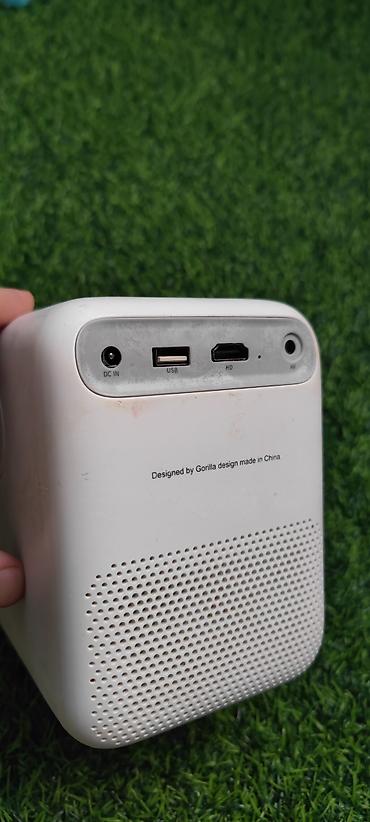 - Компактный домашний проектор с крупной линзой и перфорированным корпусом для охлаждения.