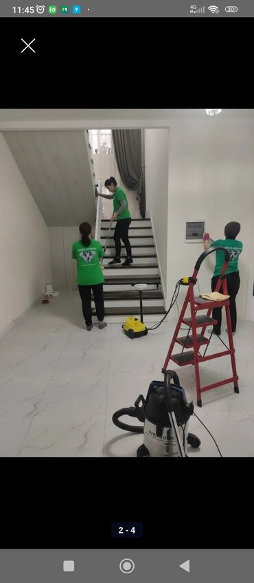- Использование профессионального инвентаря: стремянки, пароочистители, строительные и моющие пылесосы, моп‑системы