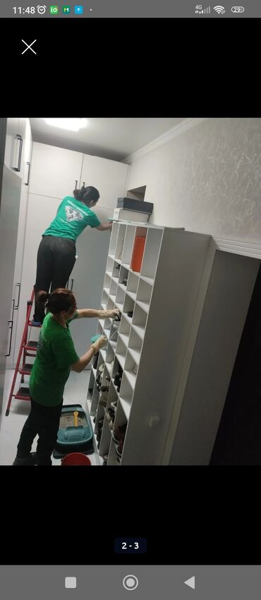 - Глубокая уборка труднодоступных мест: верхние зоны, шкафы, стеллажи, перила и лестницы, осветительные приборы