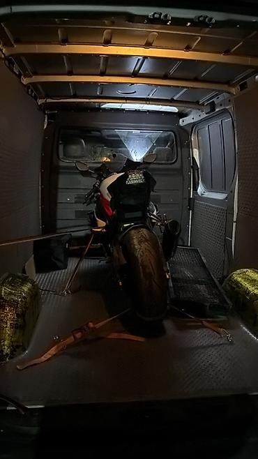 - Фиксация мотоцикла профессиональными стяжными ремнями и вило-/колесными упорами; крепёж за колёса — без нагрузки на подвеску и руль.