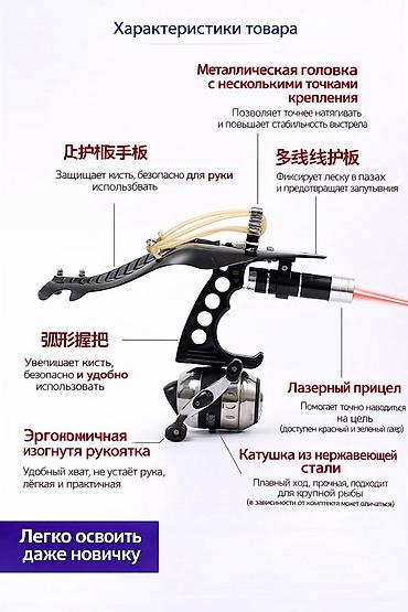 🎯 Рогатка-удочка для рыбалки с катушкой и лазером — Премиум комплект Мощная и точная рогатка для рыбалки, которая позволяет легко попадать в цель и вытаскивать добычу благодаря катушке и прочной л...
