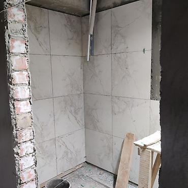 - Услуги: облицовка стен и пола керамогранитом и плиткой любых форматов (в т.ч. крупноформат), устройство душевых поддонов в уровень с полом, монтаж инсталляций, ниши и полочки, облицовка ванн, выполнение столешниц под раковину из плитки/керамогранита, герметизация и затирка.