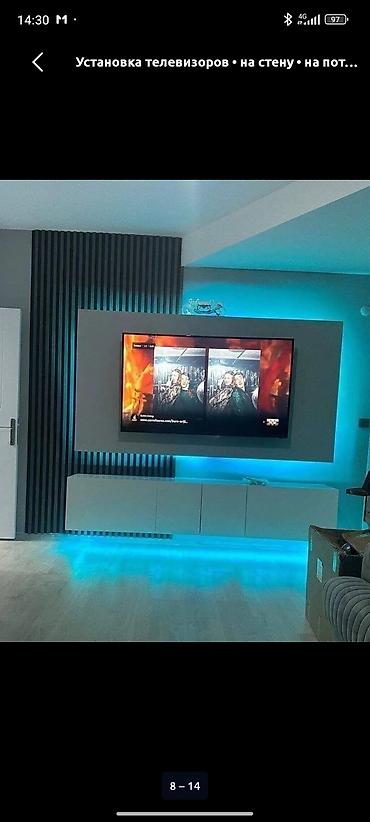 - Монтаж ТВ любых диагоналей, точная разметка и крепление на любые основания