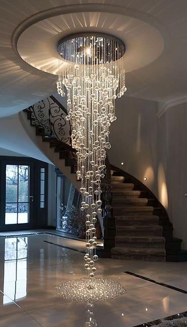 Услуга монтажа люстр любой сложности — от компактных потолочных моделей до многоярусных хрустальных и каскадных инсталляций для холлов, лестничных пролетов и помещений с высоким потолком.
