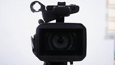 Видеокамера Sony с внешним направленным микрофоном на штативе
