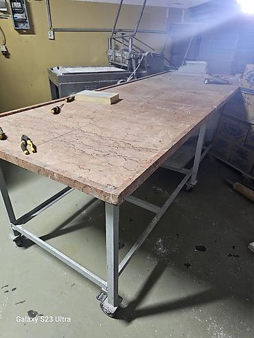 - Производственный стол на колесах с массивной каменной (мраморной) столешницей — идеально для замеса, формовки, раскатки, темперирования и работы с шоколадом и тестом.
