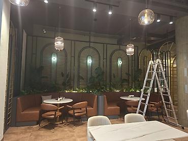 - Полный цикл электромонтажа для ресторанов, кафе, залов и офисных пространств: силовые линии, освещение, розеточные группы, слаботочные трассы.
