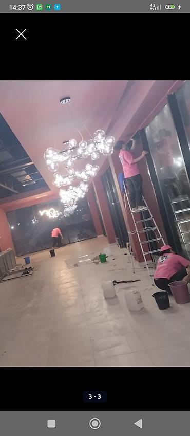 - Послестроительная/послеремонтная уборка: удаление строительной пыли, мытьё полов и стен, очистка стекол и витражей, вынос мелкого мусора