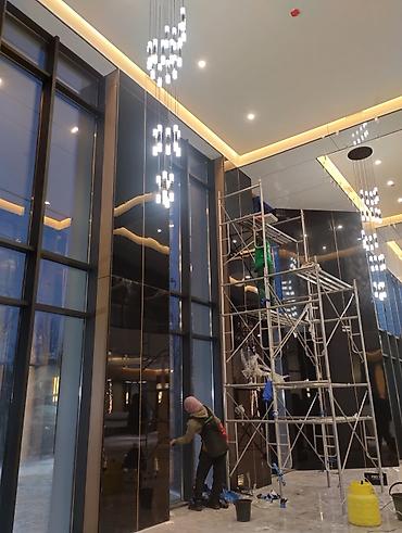 - Мойка панорамных и труднодоступных окон, витражей, фасадного остекления (в том числе с лесов)