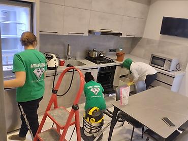 - Генеральная уборка жилых помещений: кухня, санузлы, комнаты, шкафы и ящики, мытьё техники (духовка, холодильник), плитки и сантехники, удаление жира и налёта, чистка труднодоступных мест.