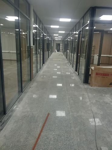 - Послестроительная/послеремонтная уборка: удаление строительной пыли, мытьё полов и стен, чистка стеклянных перегородок и витражей, вынос мусора