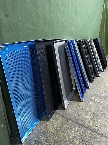 Перфорированные и гладкие профессиональные противни для пекарни/кондитерской.