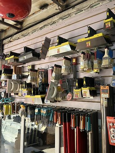 Инструменты и аксессуары для малярных и отделочных работ - Малярные валики разных диаметров и ворса (в т.ч. сменные шубки, удлинённые ручки) - Кисти малярные нескольких размеров, щётки для клея и ...