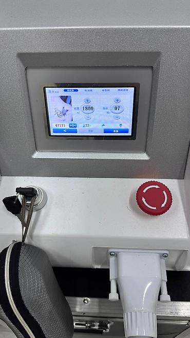 - Рабочие режимы для удаления татуировок, перманентного макияжа, пигментных пятен, веснушек; регулировка энергии (показано 1800 mJ) и частоты импульсов (до 7 Hz на экране).