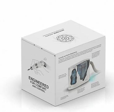 - Комплектация на фото: основной блок AirOne Pro, фрезерная ручка, гибкий шланг, расходные мешки для пыли, упаковка с формованным ложем для аккуратного хранения.