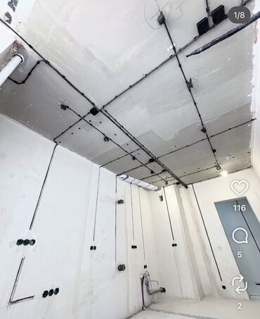 - Прокладка кабельных линий по потолку и стенам: в гофре/трубе, с креплением на клипсы и хомуты, соблюдение трасс и нормативных радиусов. Разводка под освещение, розеточные и силовые группы, технику кухни/санузлов.