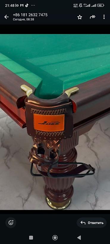 Габариты — полноразмерный стол для снукера/бильярда (большое поле, широкие борта, профессиональные лузы). Прочное исполнение, точная геометрия, комфортный ход шара. Классический вид и премиальные материалы для интенсивной игры и презентабельного интерьера.