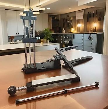 Профессиональный инструмент для заточки ножей из алюминиевого сплава с анодированным покрытием и нержавеющей стали.