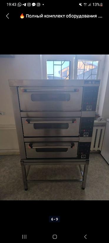 - Трёхуровневая электрическая жарочная/пекарская печь на подставке (управление по ярусам, смотровые окна, панели управления у каждого уровня).