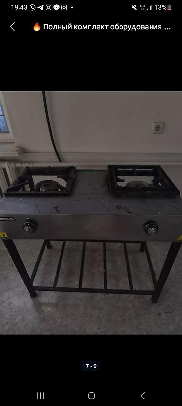 - Промышленная газовая плита на 2 конфорки на прочной металлической стойке (механические регуляторы).