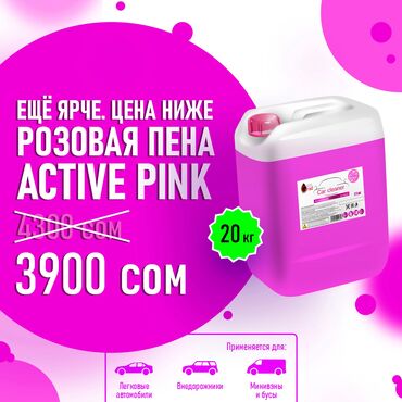 Активная розовая пена! N1 пена в Кыргызстане! Концентрат Бесконтактная! Не красит авто светлых тонов, при разбавлении 1,5 к 10 светло розовый, 1,5 к 8 ярко розовый, 1,5 к 6 свет фуксии! В нал...