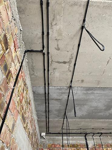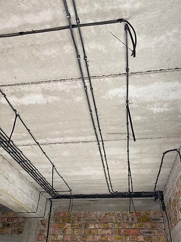 - Прокладка силовых и слаботочных линий по потолку: розеточные, освещение, интернет/TV, домофон.