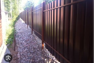 Заборы и откатные ворота из профнастила - Материал: стальной профнастил с полимерным покрытием. Вертикальная волна, аккуратный шаг, скрывающий крепёж. - Цвета на фото: графит/антрацит и коричневый...