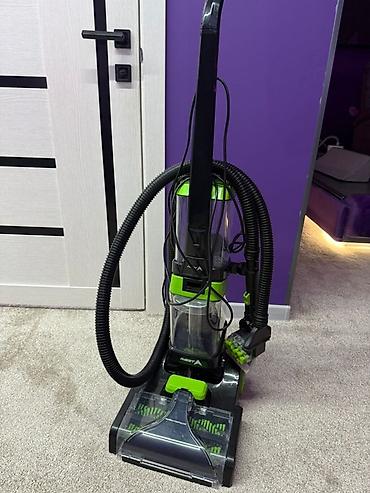 Габариты: компактный вертикальный корпус с ручкой для переноски. Цвет: черный с салатовым. Электропитание от сети 220–240 В.