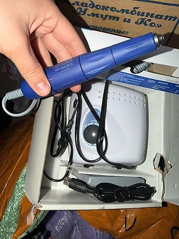 - Электрическая фрезерная машина с блоком питания и ручкой-микромотором STRONG 102 (на ручке маркировка). На блоке — регулятор скорости и переключатели, комплект проводов в коробке.