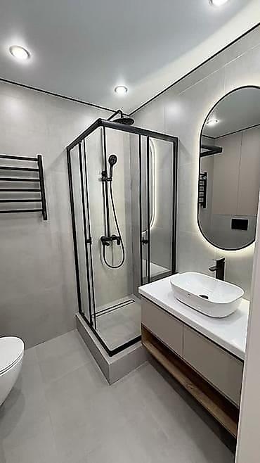- Полный комплекс работ: демонтаж, черновые работы, гидроизоляция, штукатурка/стяжка, выравнивание, электрика и освещение, разводка воды и канализации, тёплый пол.