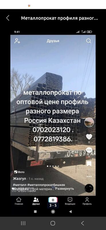 - Текст на фото: «металлопрокат по оптовой цене, профиль разного размера».