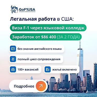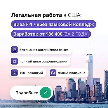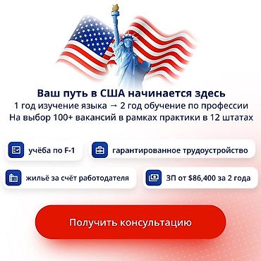 - Официальная работа в США с обучением: 1 год изучения языка в языковом колледже → 2 года обучения по профессии и оплачиваемой практики.