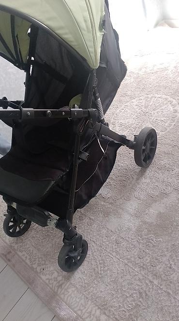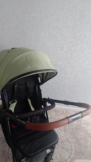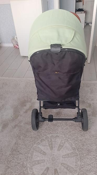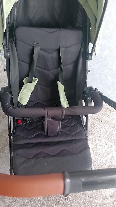 Идеальна для ежедневных прогулок по городу: маневренная, защищает от солнца и ветра, все необходимое под рукой. Цвет: светло‑зеленый капюшон, черное сиденье, коричневая накладка на ручке.