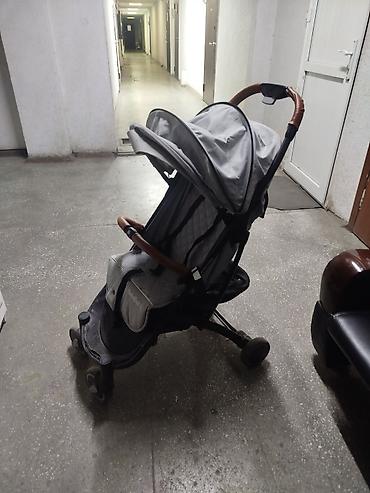 Цвет: серый текстиль, чёрная рама, коричневые накладки на ручках. Подходит для ежедневных прогулок и поездок: манёвренная, быстро складывается, занимает минимум места.