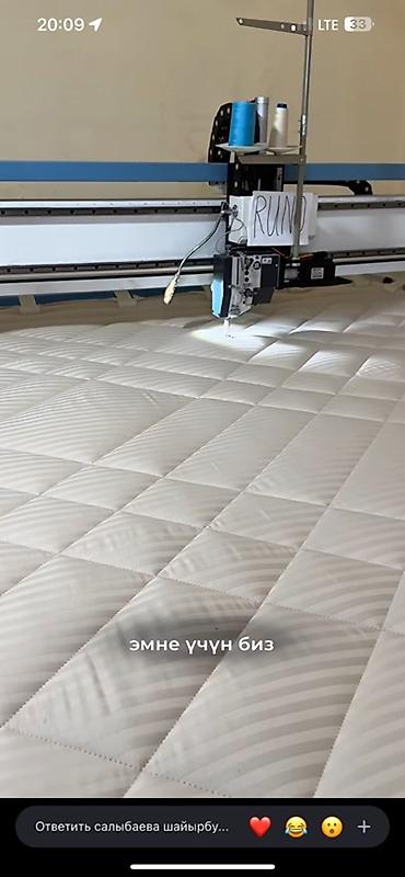 - Поле стежки: широкий формат для крупных изделий (в кадре — полотно матрасного чехла)