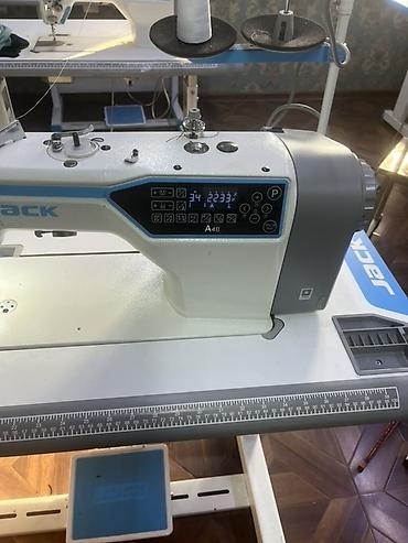 - Прямострочная электронная машина JACK A4B с встроенным сервоприводом и панелью управления на корпусе. На столе со встроенной линейкой и педалью JACK. Дисплей показывает счетчик стежков/скорость, на панели – функции позиционирования иглы, закрепки, программирования участков, регулировки скорости и длины стежка. Нитенаправители и катушкодержатели установлены, предусмотрен отсек для аксессуаров.