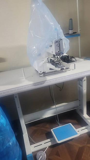 - Автомат для операций по пришиву (программируемая швейная головка/паттерн-машина JACK) – платформа под шаблон, прижимная рамка, электронное управление. Подходит для серийных операций: пришив ярлыков, элементов фурнитуры, декоративных/усилительных строчек по заданному контуру. Машина на промышленном столе с педалью JACK.