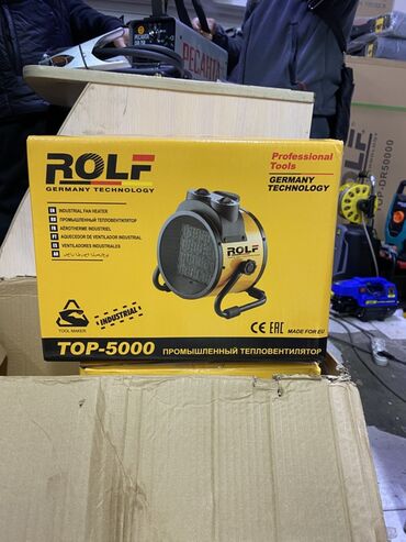 - Промышленный электрический тепловентилятор ROLF TOP-2000 — питание 220 В, 50 Гц. Переносной, с поворотной рамой, механическим термостатом и регулировкой режимов, для локального обогрева рабочих зон.